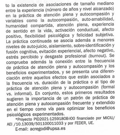 Efectos psicológicos de la práctica continuada de atención plena (mindfulness) y autocompasión