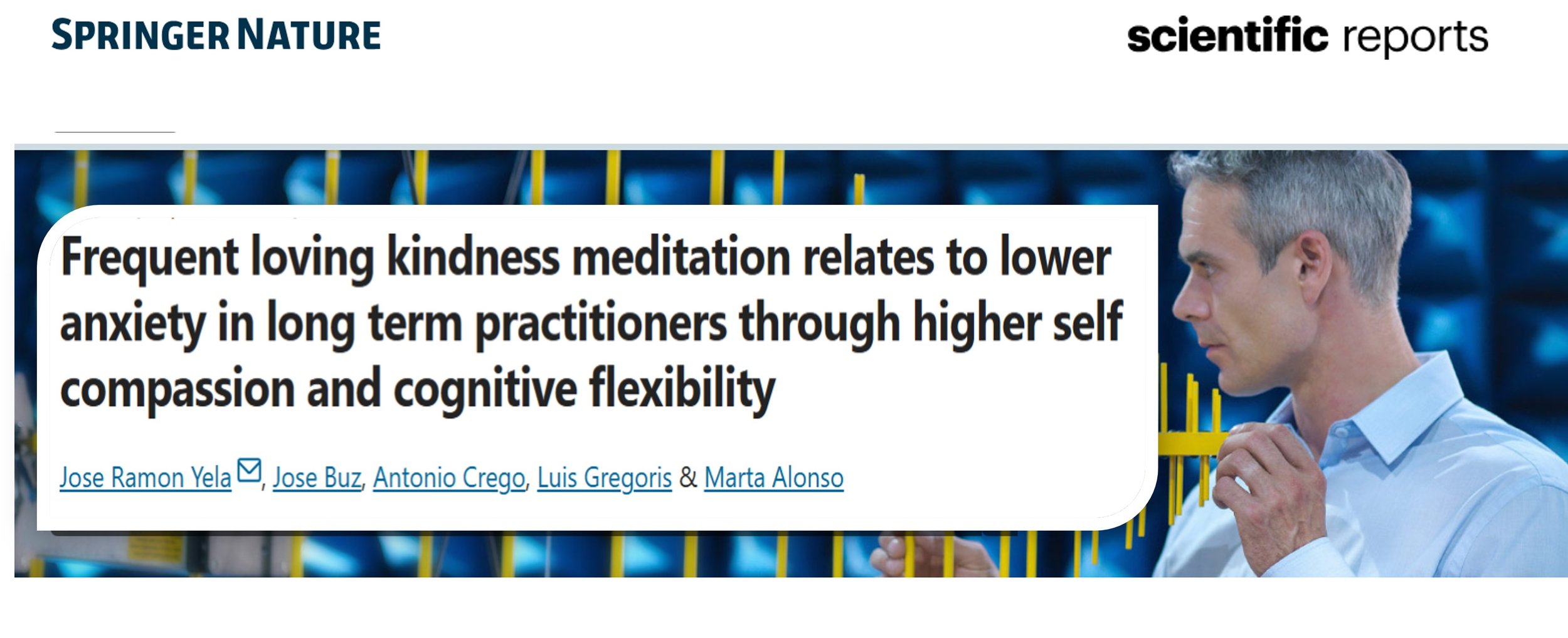 “La Práctica continuada de la Bondad se relaciona con una menor ansiedad en quienes la practican a largo plazo, gracias a una mayor autocompasión y flexibilidad cognitiva”. Este hallazgo ha sido posible por la colaboración de los grupos de meditación de GlobalC, por tanto, todo nuestro agradecimiento a las decenas de voluntarios que participaron en esta investigación dirigida por el Dr. José Ramón Yela, y Dr. Antonio Crego
